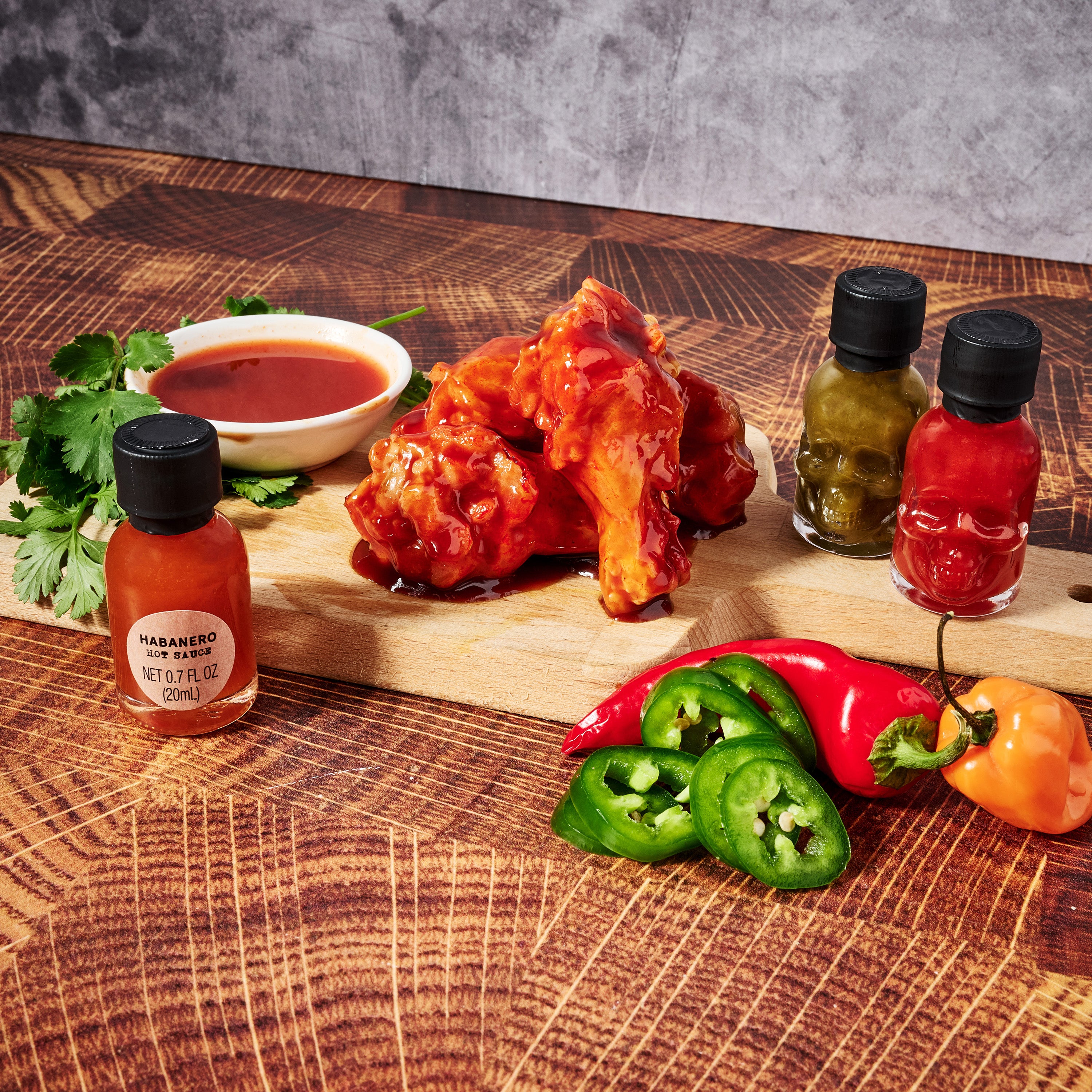 HOT SAUCE SAMPLER contains 21 savory, spicy, smoky and sweet hot sauces in mini bottles for you to enjoy